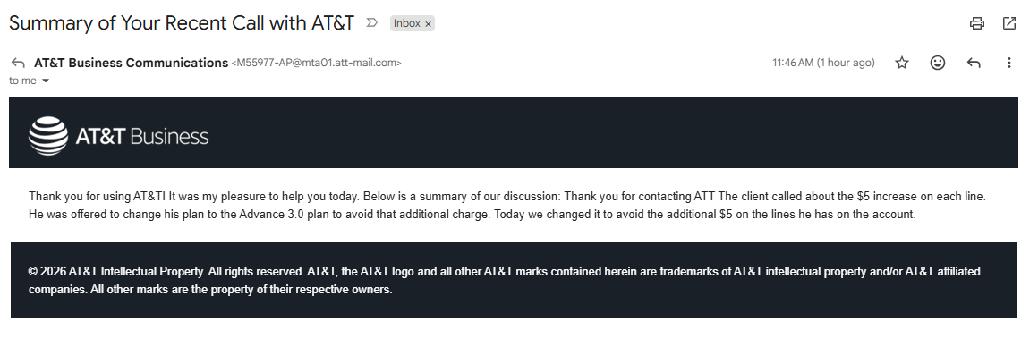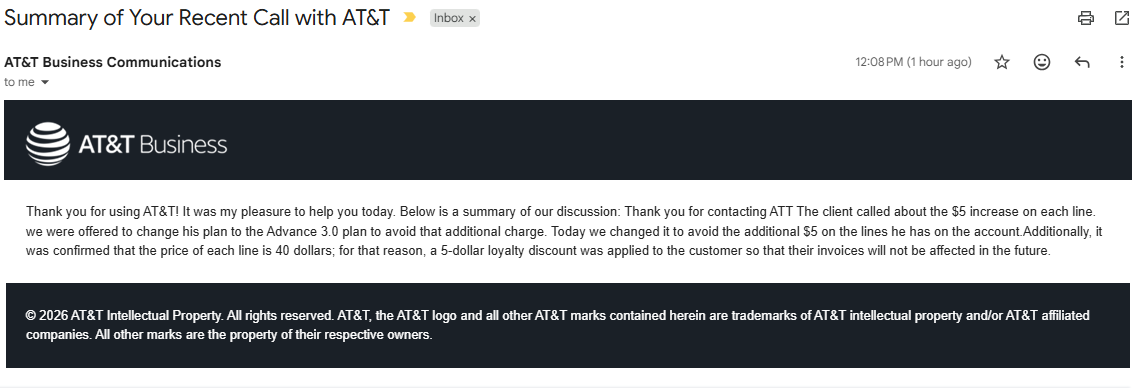 If you want to read the exact letter AT&T sent by email to affected business customers, you can read the AT&T price increase letter here.